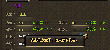 我另外一个想法是,招一个太史慈,换掉夏侯渊。太史慈提供buffer和关兴一样,但攻击和成长不是一个比例的。可是考虑到需要的金钱数目,以及需求的经验,武将的成长性,考虑了许久,再加上团里成员提出的意见和建议,痛下决心,放弃。下面是成长截图,算作我为什么放弃太史慈的原因之一吧。