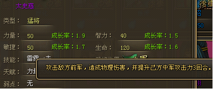 说到这里,太史慈敏捷成长还是有点高,并且是暴击属性,打Boss还是给力,只是个人原因,需要放弃,不然装备,副将等级上不去。
